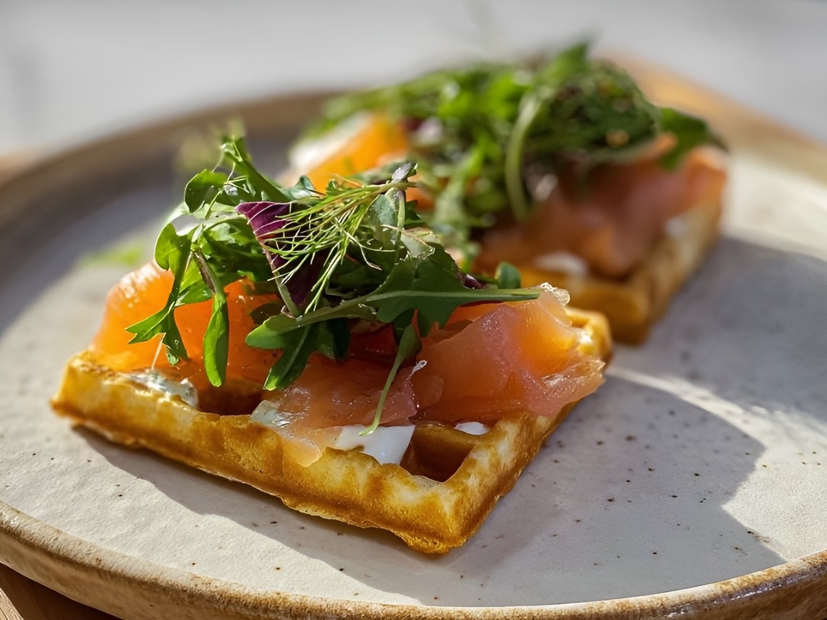 Вафельная брускетта с лососем гравлакс