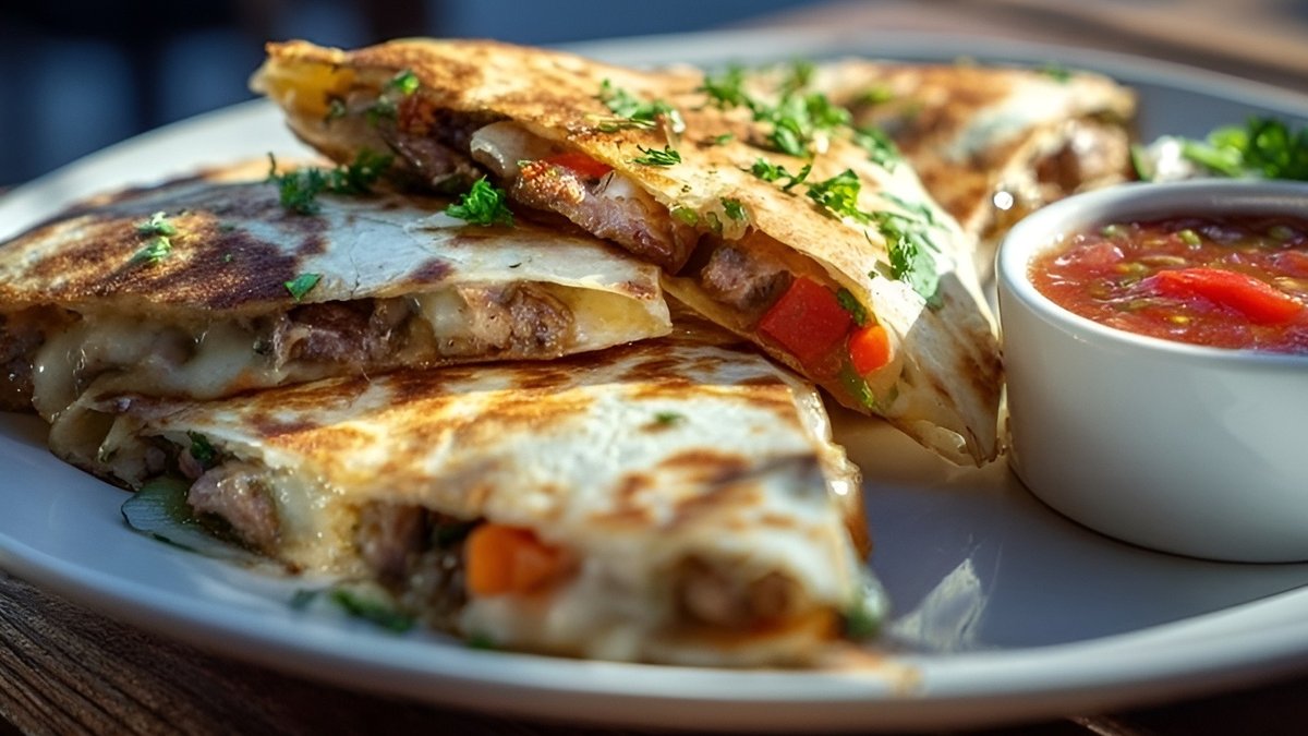 Кесадилья с беконом из говядины и овощами
