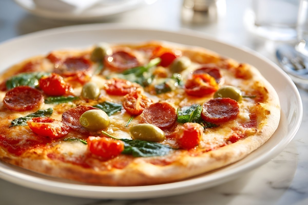 Нежное куриное филе, обжаренное до золотистой корочки и поданное с пряным соусом Аль-Арабьята и сливками, дополнено миксом свежего салата, помидорами черри и тёртым пармезаном