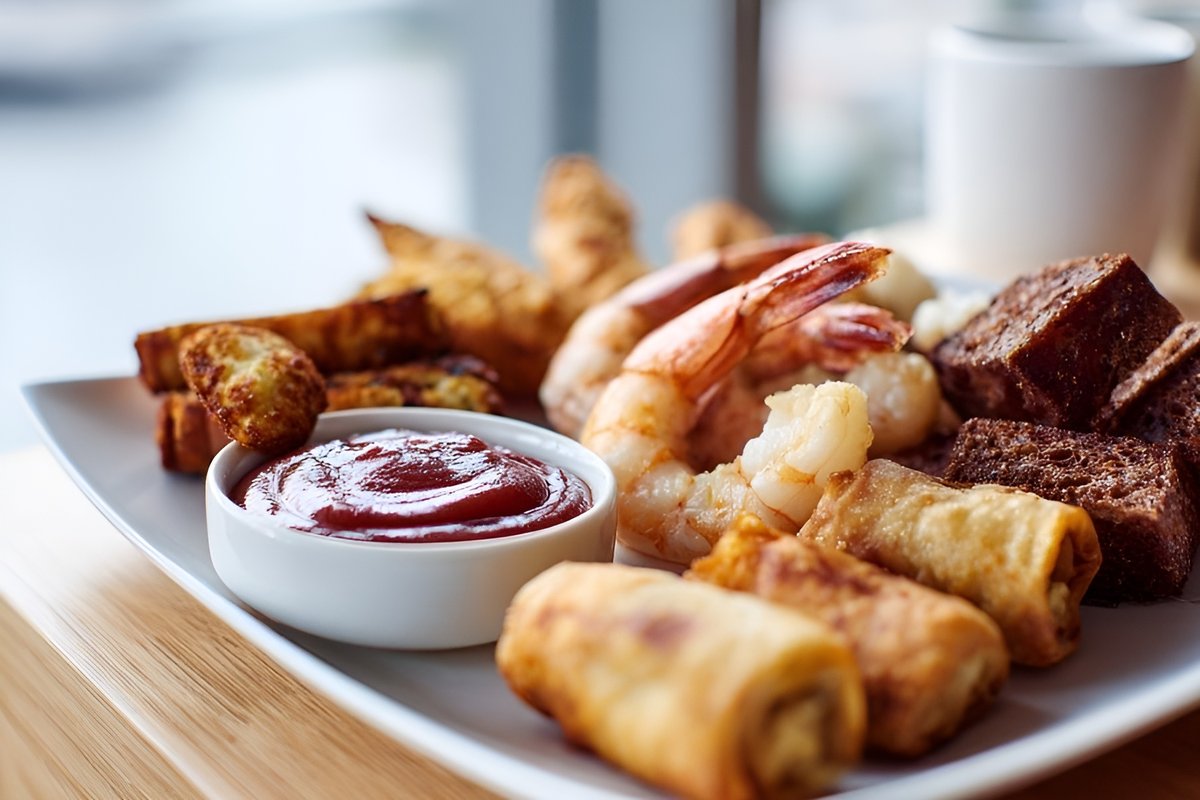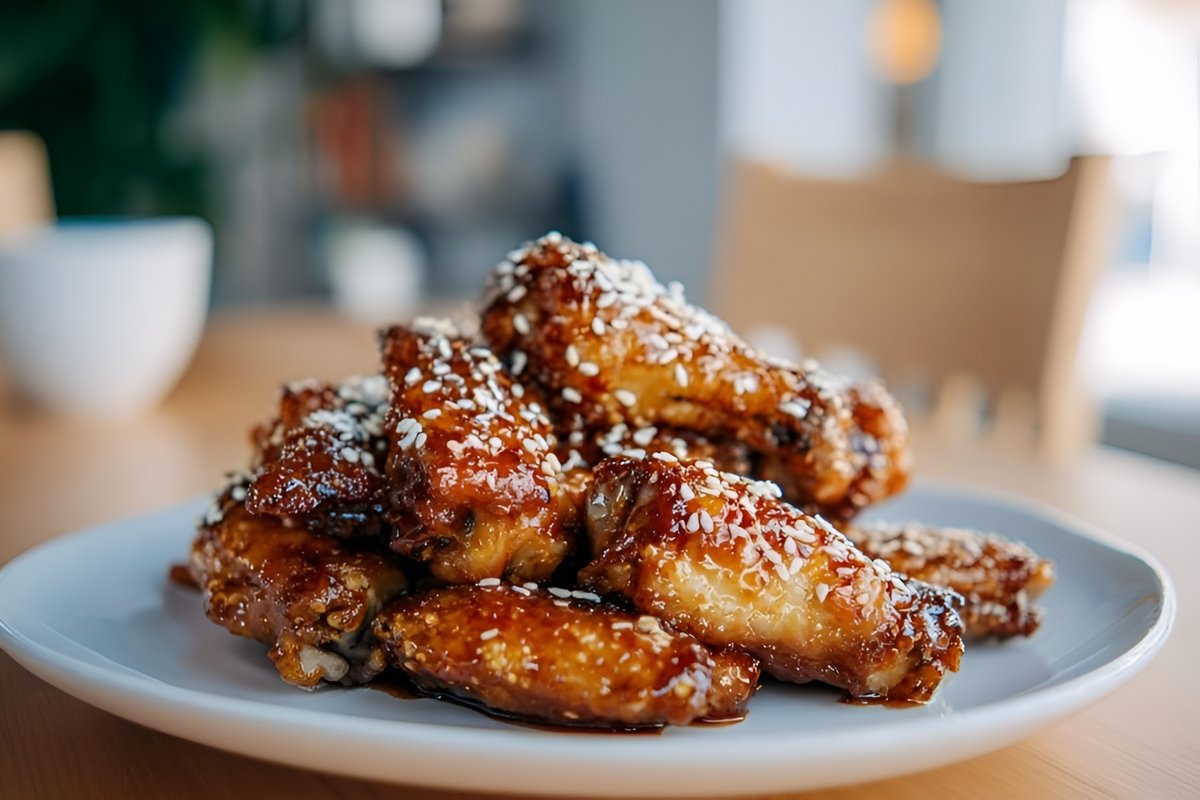 Куриные крылья, обжаренные до золотистой корочки и покрытые острым соусом шрирача. Пикантное блюдо с насыщенным вкусом и лёгкой сладостью.