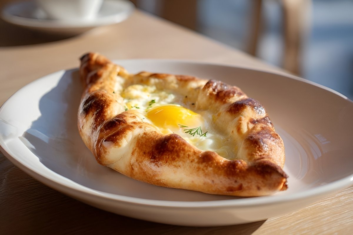 Это грузинское блюдо в виде открытой лодочки с начинкой из нескольких видов сыра, сырого желтка и сливочного масла