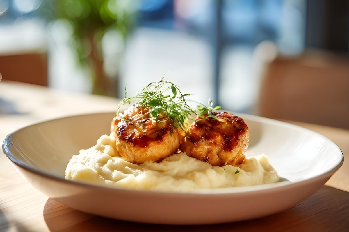 Нежные куриные биточки из сочного куриного мяса, поданные с мягким пюре на молоке - простой и комфортный домашний вкус