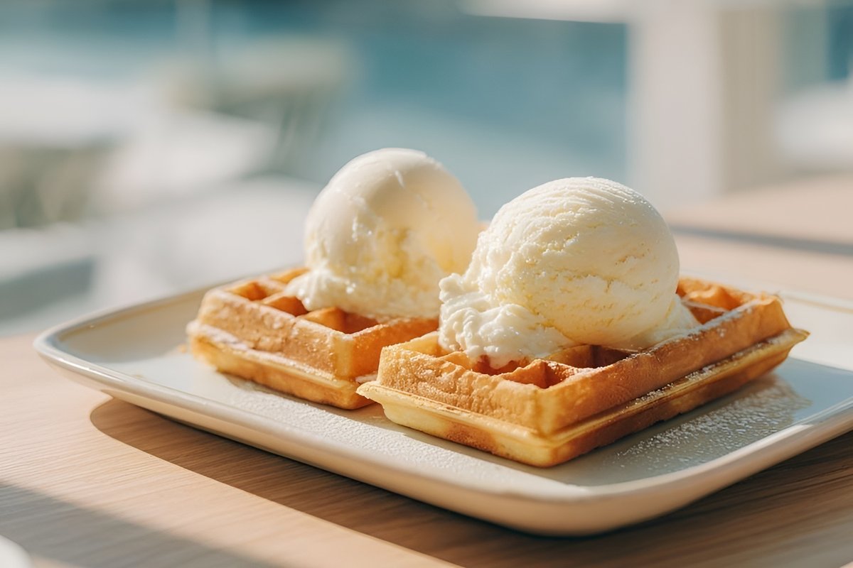Бельгийские вафли с мороженым(банан/грецкий орех)
