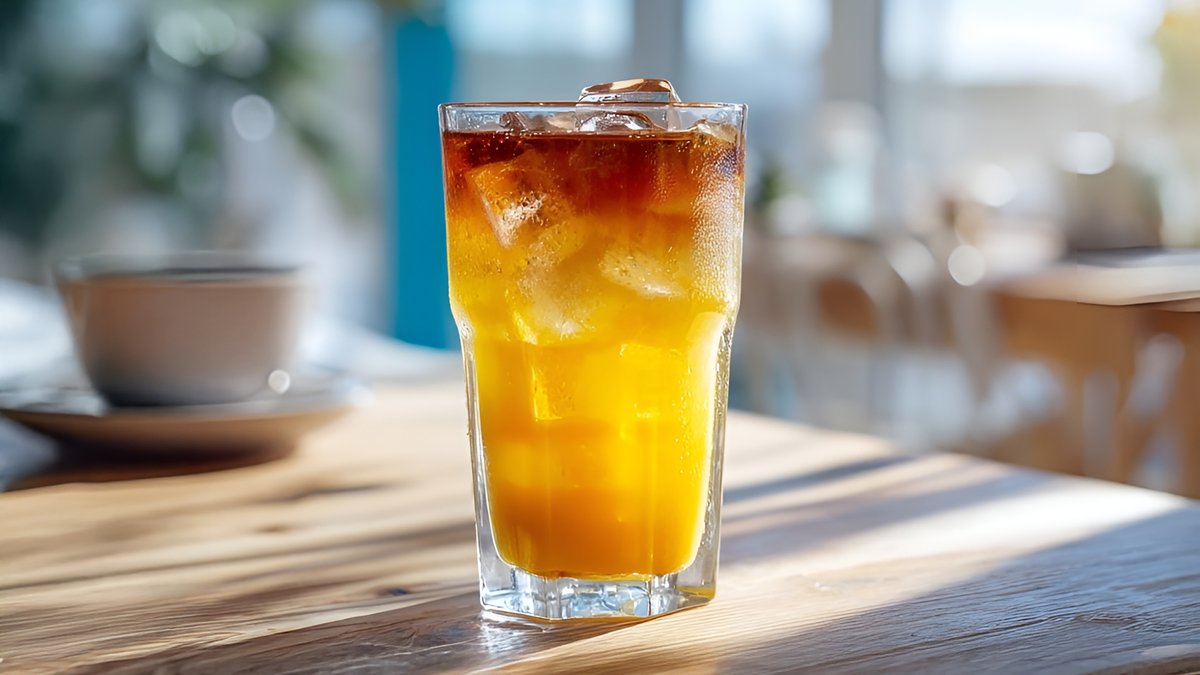 Яркий кофе-микс, где холодный эспрессо соединяется с апельсиновым соком и лёгкой сладостью сиропа. Освежающий и бодрящий напиток.