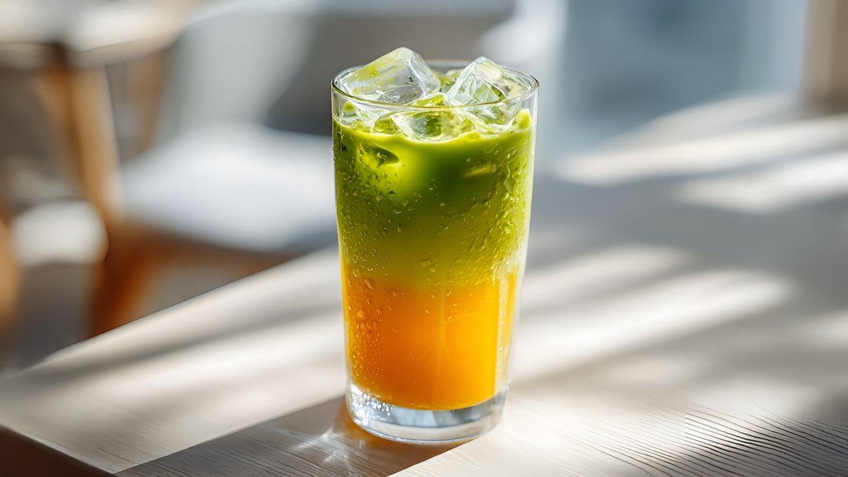 Освежающий напиток, где плотный вкус матча соединяется с цитрусовой сладостью апельсинового сока. Яркий, бодрящий и слегка сладкий