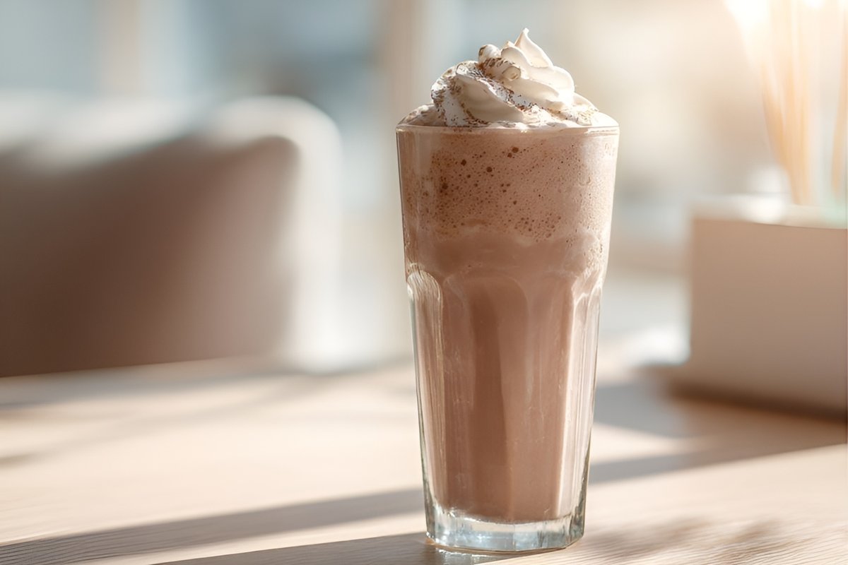 Плотный сливочный коктейль с добавлением шоколадного сиропа - яркий и насыщенный вкус. Собственного приготовления