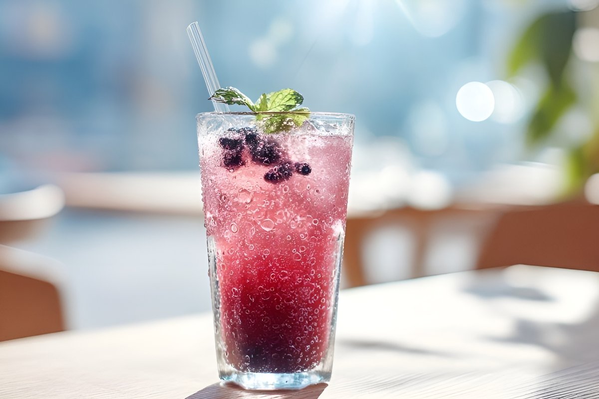 Натуральный лимонад из свежей черники с мятой, сочетающий ягодную сладость и приятную свежесть