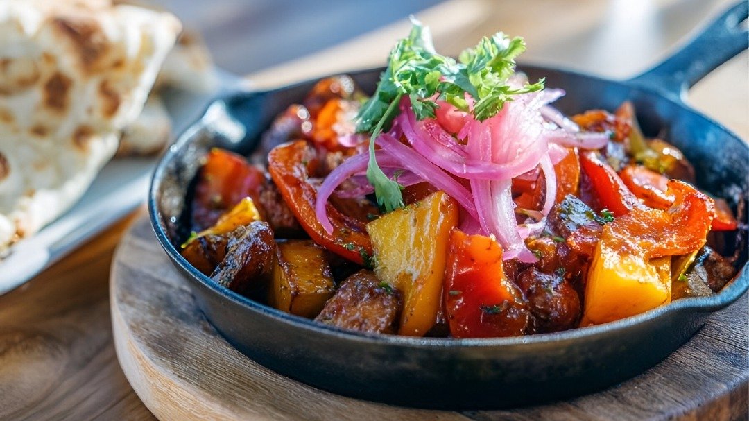 Нежные рёбра, томлённые с ароматными овощами и специями. Сладость перцев и баклажанов сочетается с лёгкой кислинкой винного уксуса, создавая насыщенный вкус блюда с ярким восточным акцентом