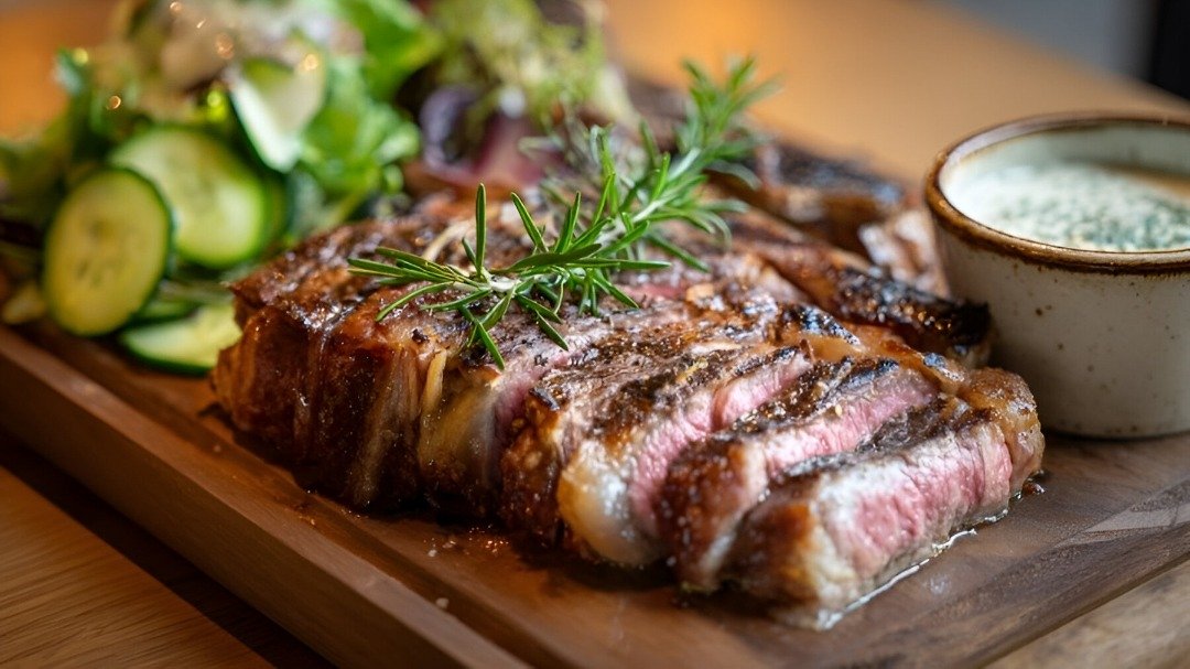 Сочная говядина на кости, обжаренная до идеальной корочки . Подаётся с ароматными специями и сливочным маслом, подчеркивающими насыщенный вкус мяса
