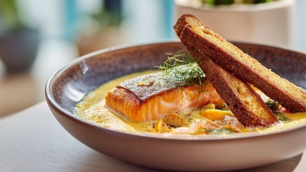 Нежная рыба, обжаренная до золотистой корочки и подающаяся с ароматным соусом. Гарнируется мягкой цветной капустой, которая подчёркивает вкус блюда