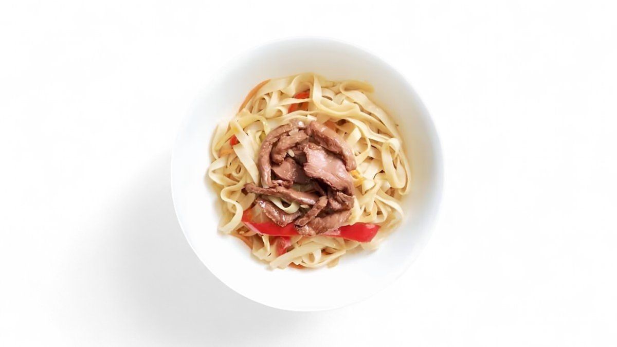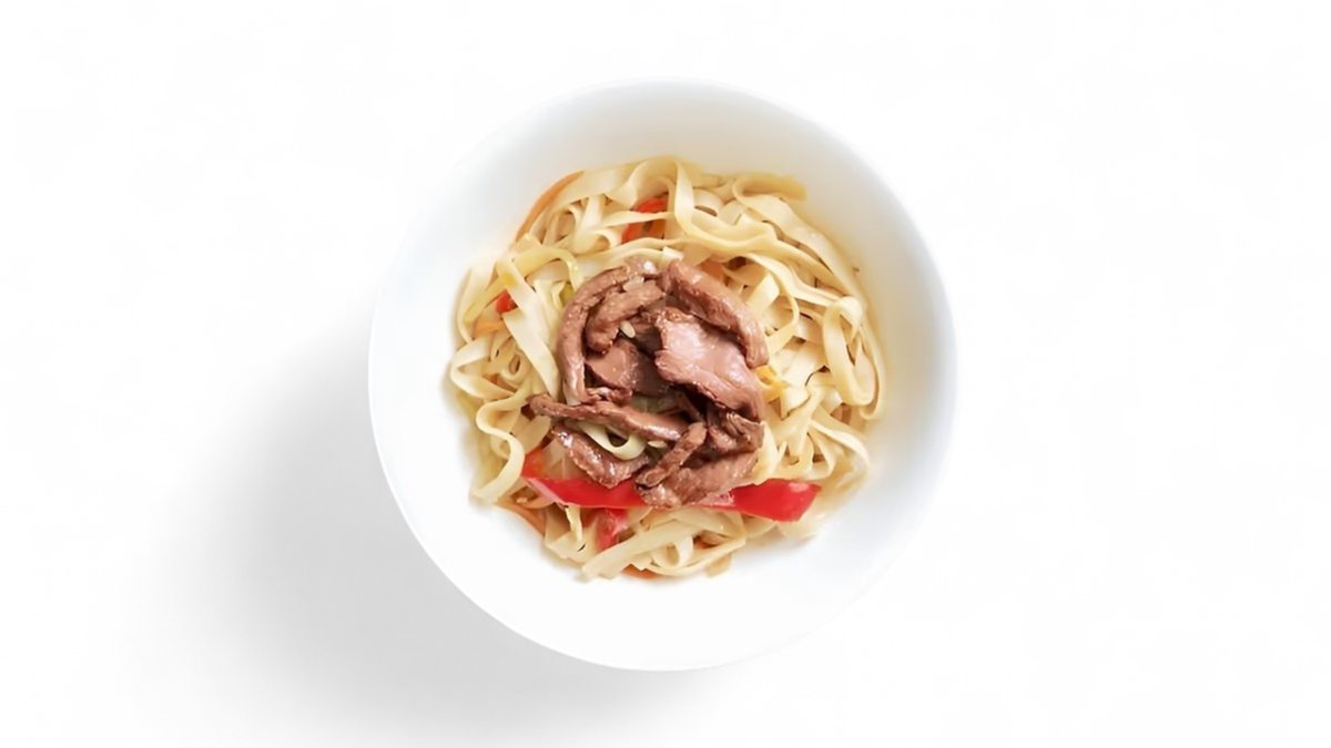 Сочная говядина в кисло-сладком соусе с пшеничной лапшой и овощами