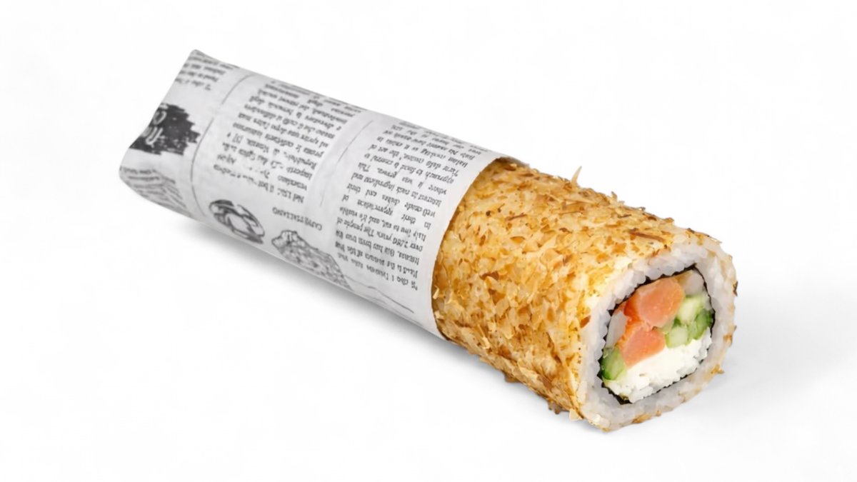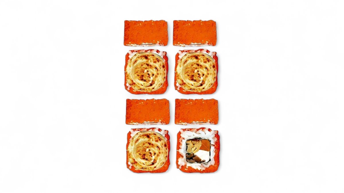 Сухари панировочные, Нори, Моцарелла, Салат, Курица филе (копченая), Масага оранжевая, Спайси соус, Тесто темпура, Омлет Томаго, Рис заправленный
