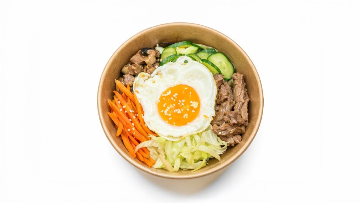 Рис в сочетании нежной говядины, грибами, овощей и глазуньи