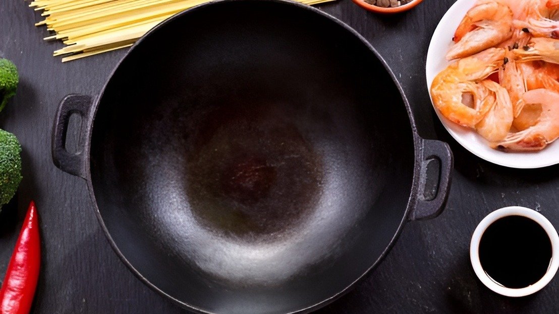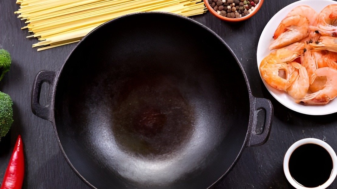 Креветки в соусе кимчи с пшеничной лапшой и овощами