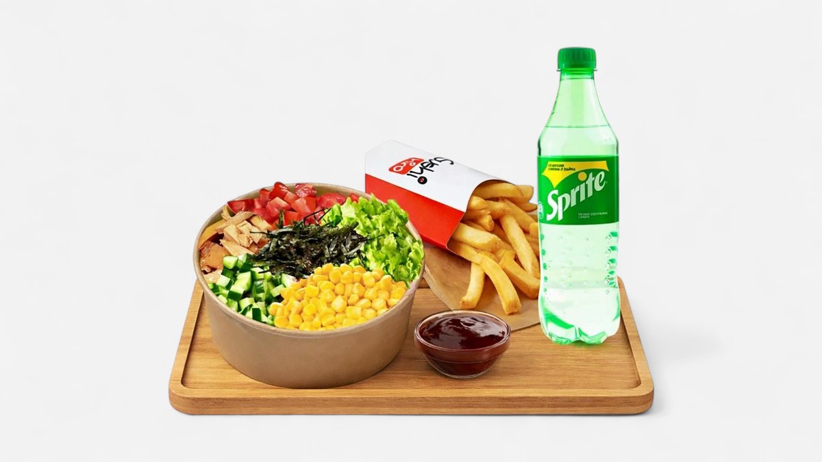 Поке чикен терияки, Картофель фри, соус Барбекю, Sprite 0.5