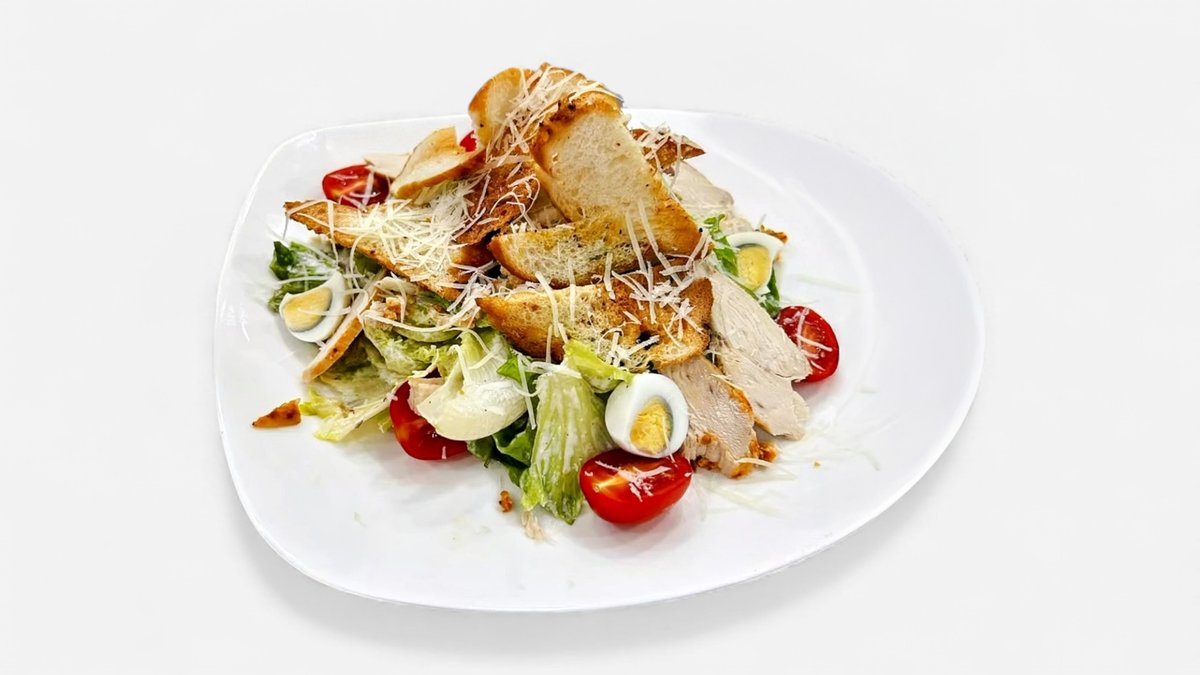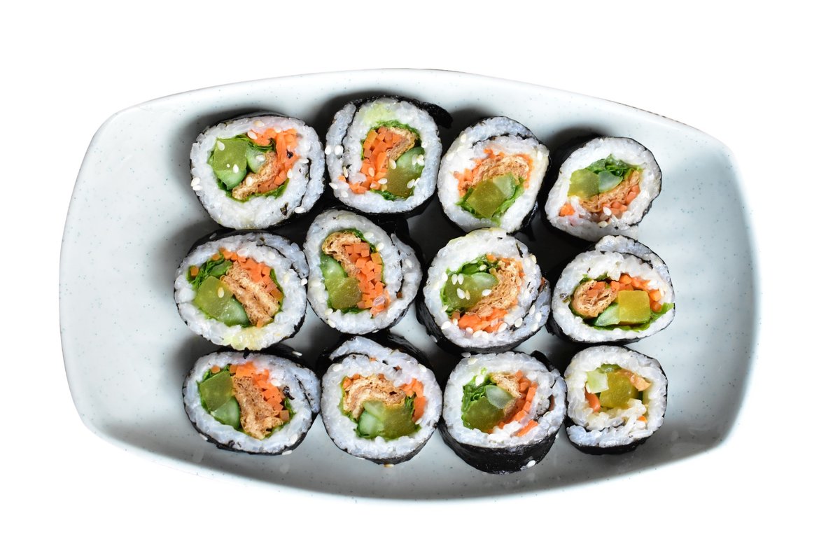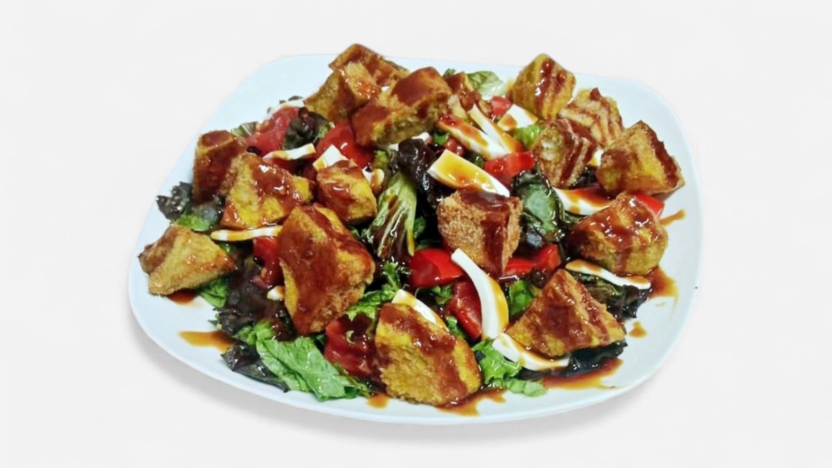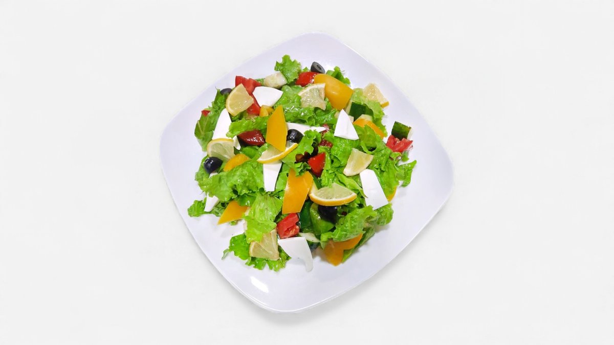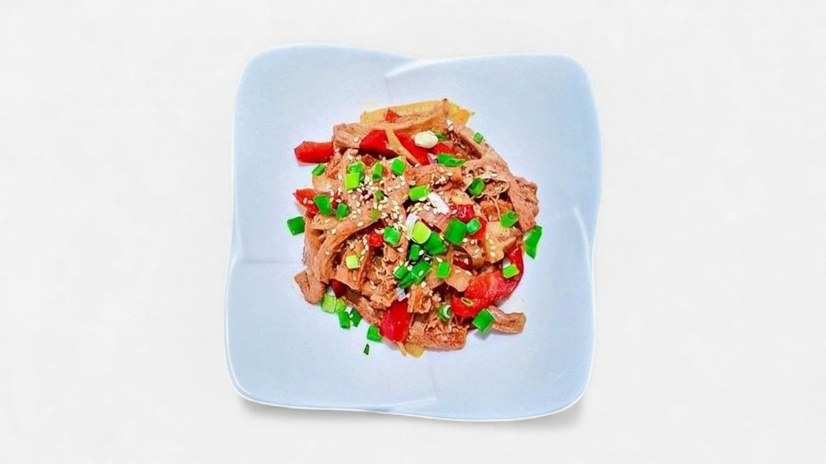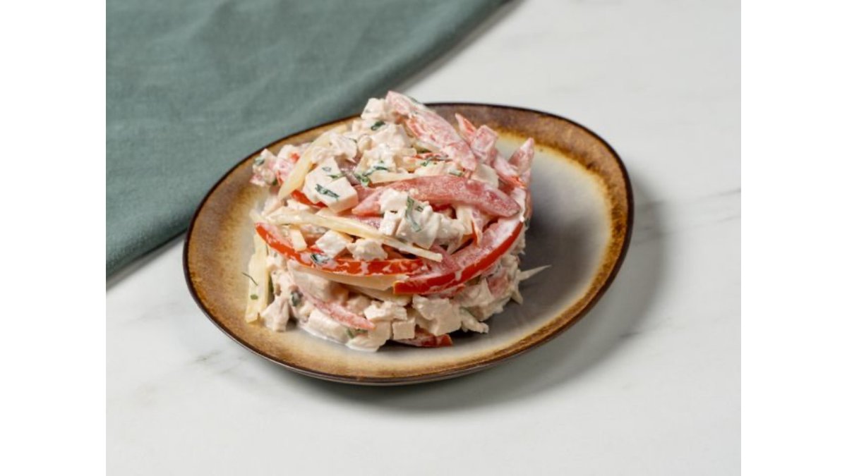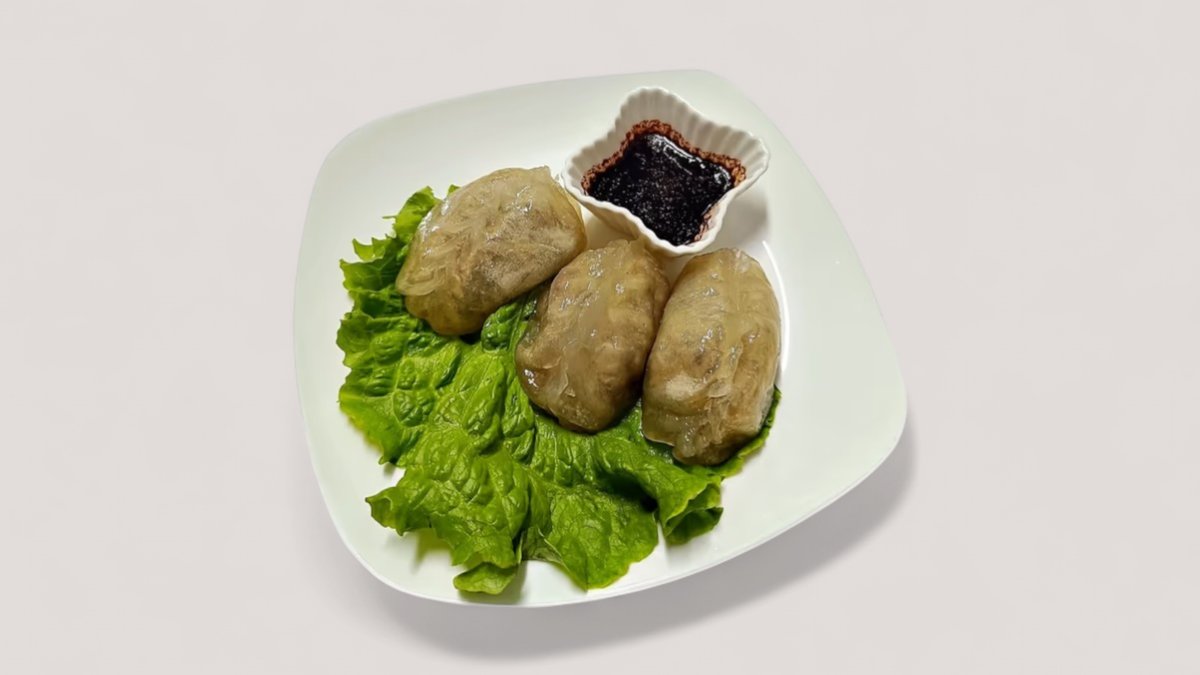 говядина, помидоры, огурцы, капуста, яичные блины, кунжут