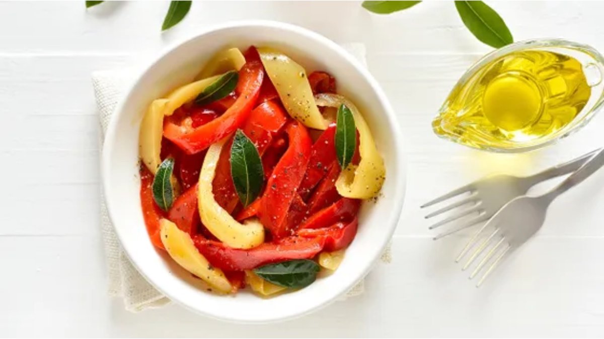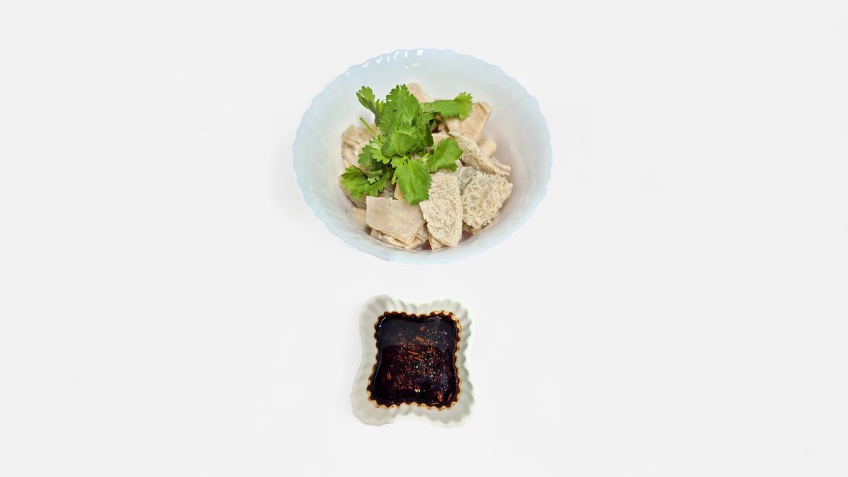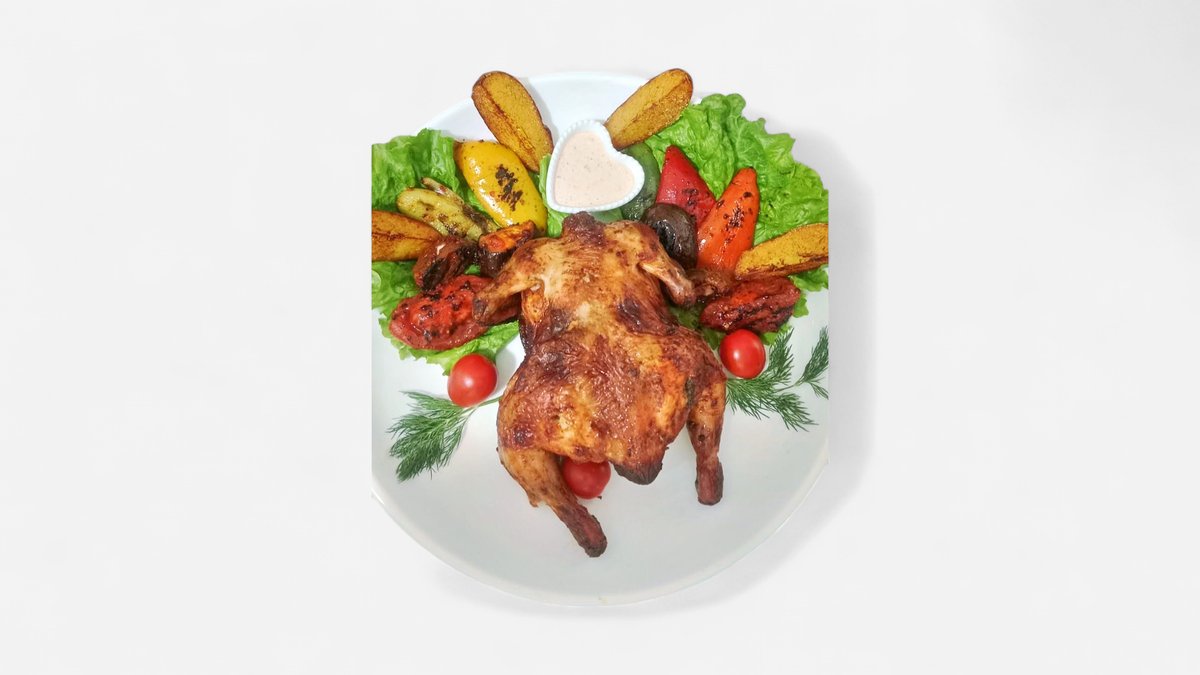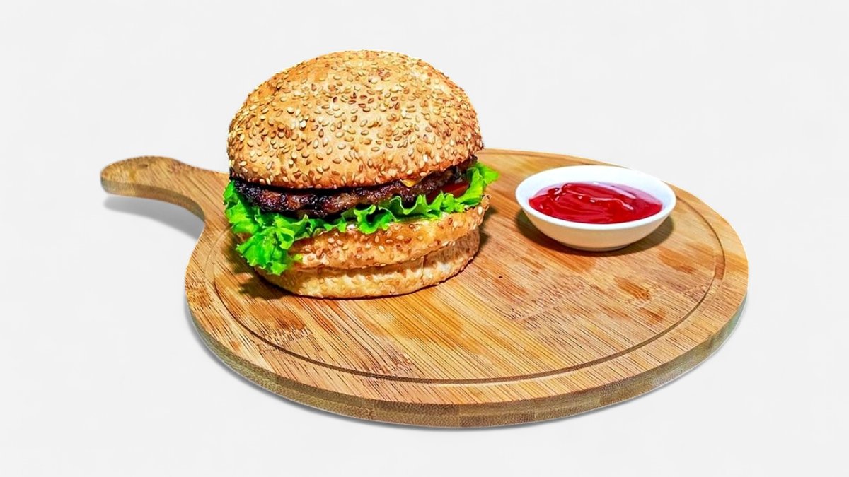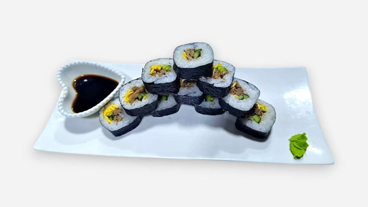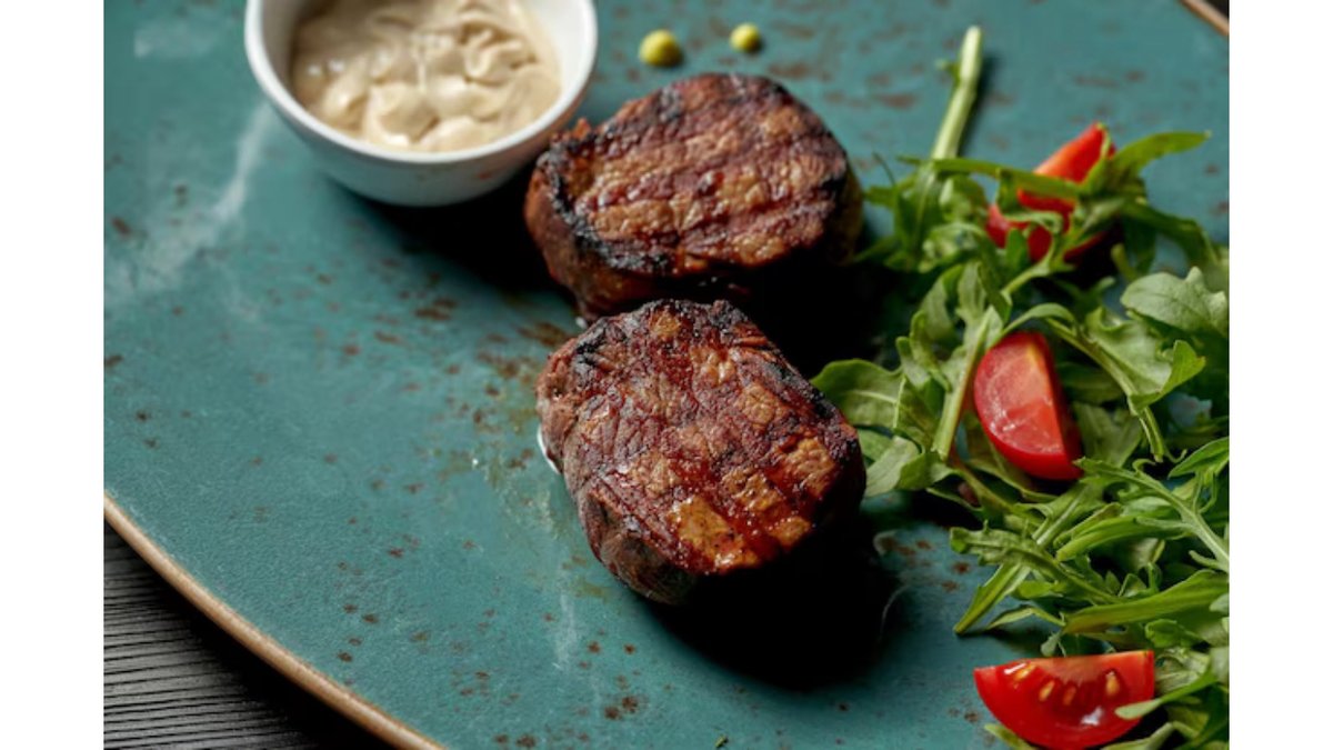 говядина, помидоры, огурцы, капуста, яичные блины, кунжут