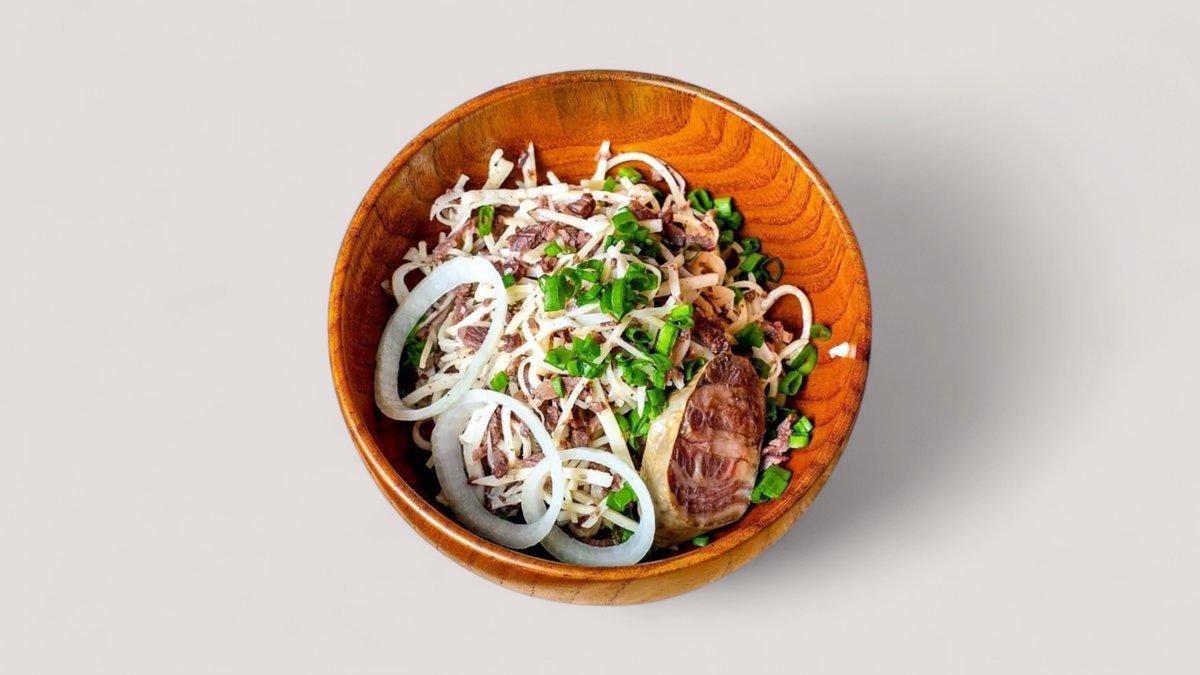 Рис, говядина, морковь, нут, изюм, лук, чеснок, зира, казы, яйцо перепелиное.