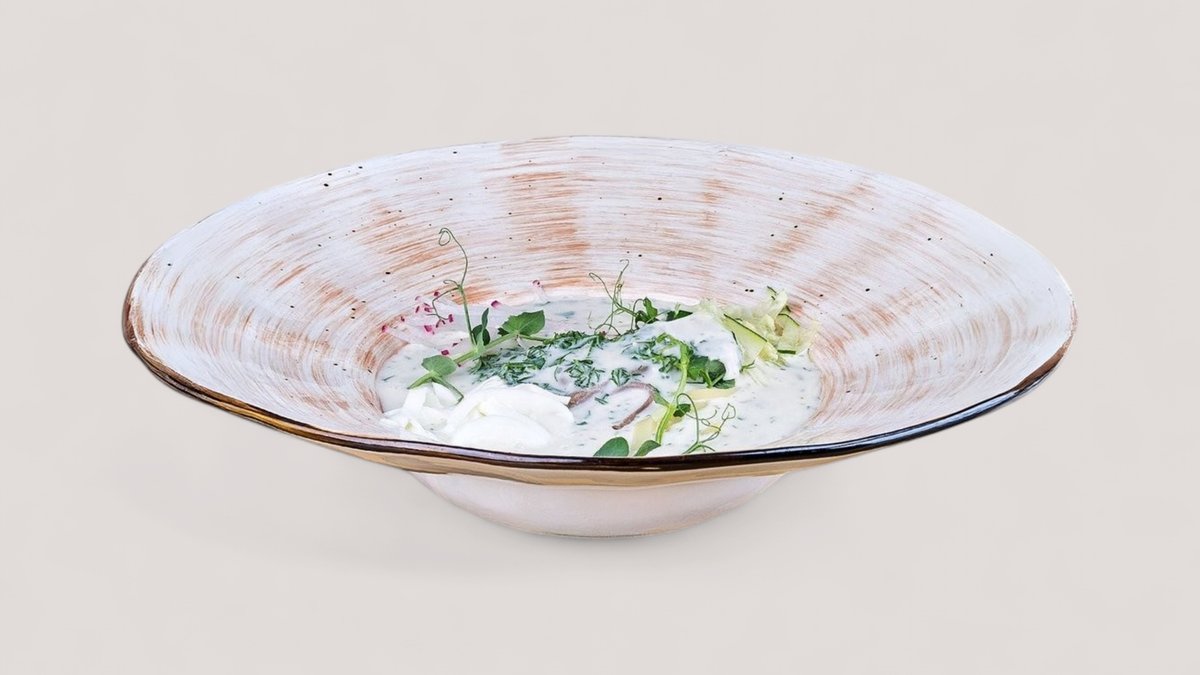 Куриный суп, манты с говядиной, салат греческий, самса из говядины или курицы, баурсаки, трубочки с кремом, чай.