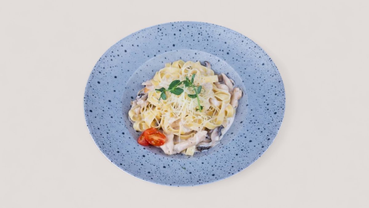 Филе курицы, обжаренные шампиньоны, домашний томатный соус и моцарелла.