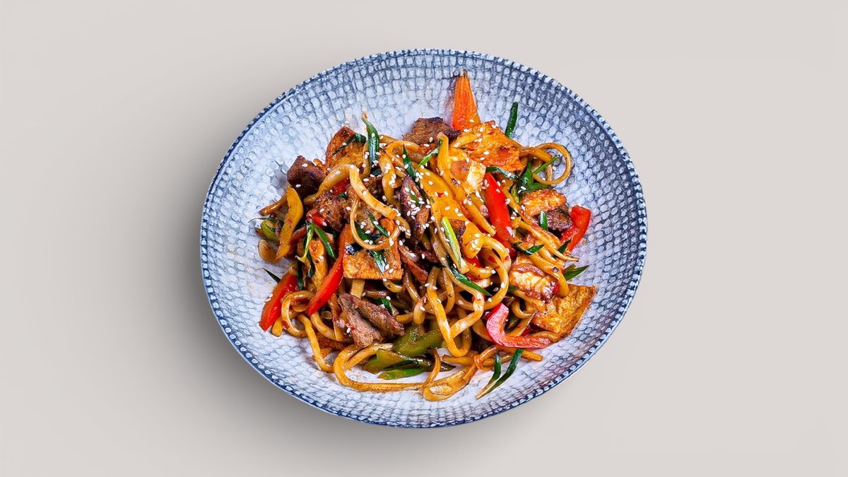 Шурпа из говядины, плов Ташкентский, салат ачи-чук, самса из говядины или курицы, баурсаки, пахлава, чай.