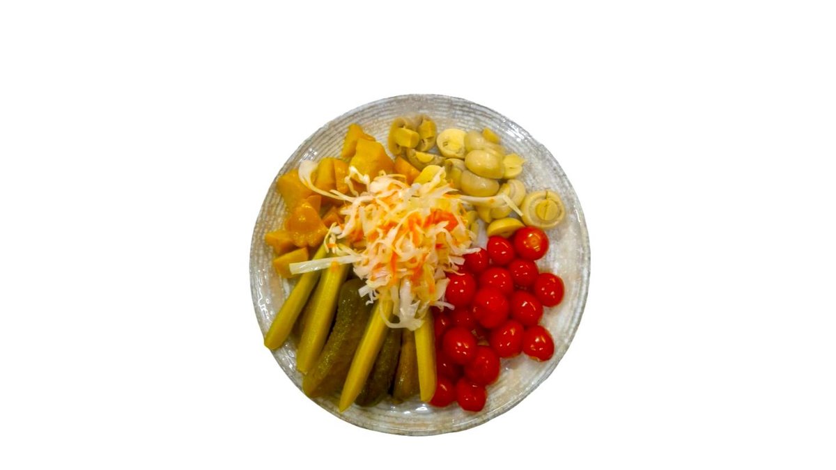 Маринованный черри,маринованные карнишоны,паттисоны,маринованные шампиньоны и квашенная капуста(в сумму включена стоимость за одноразовую посуду)