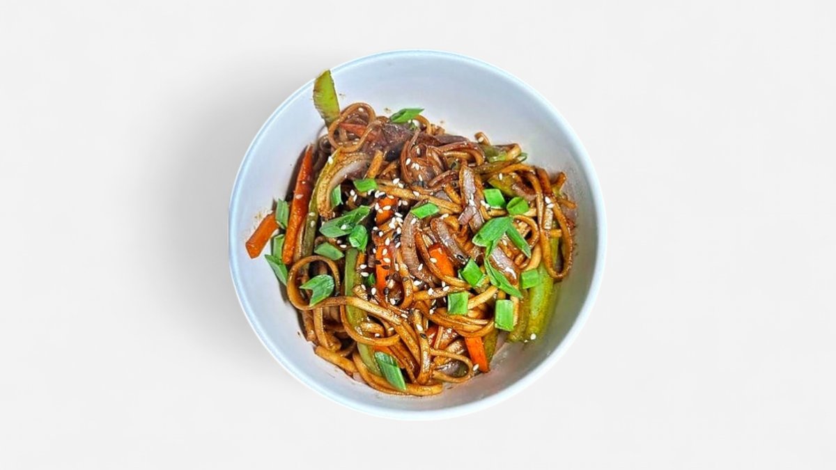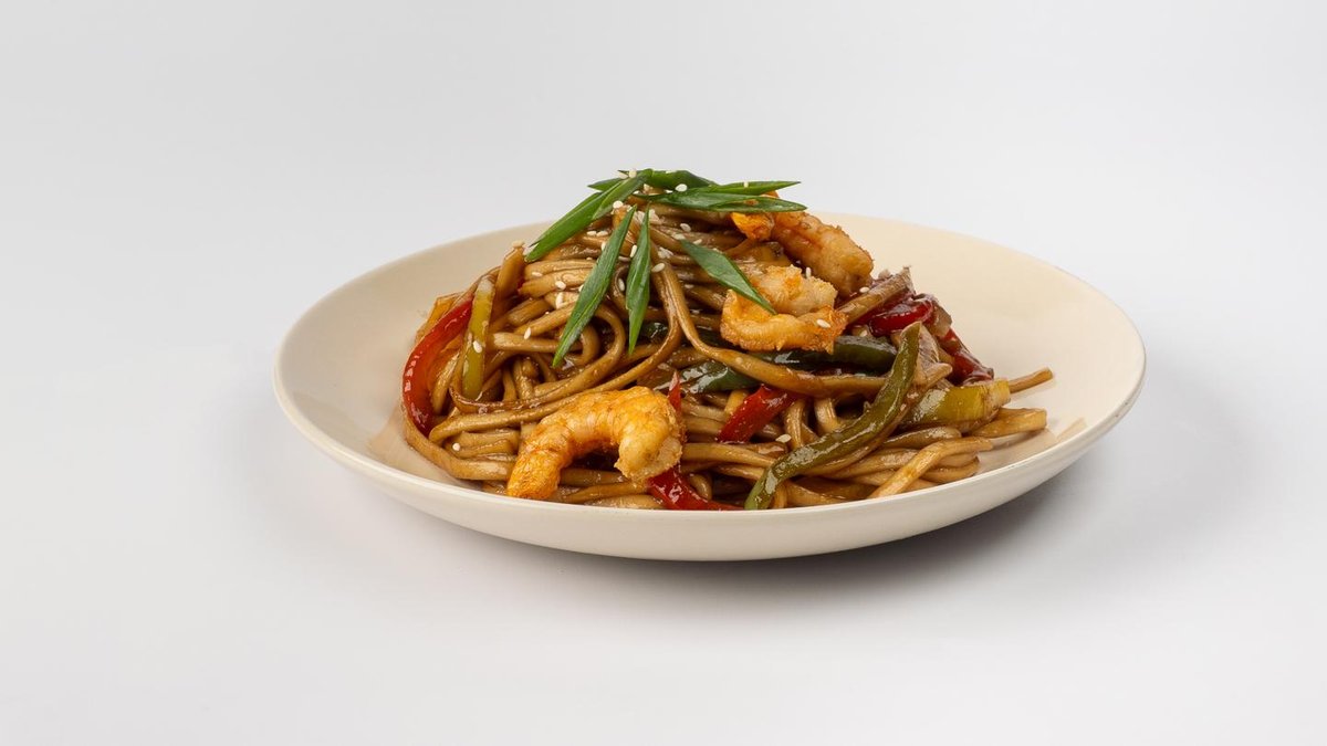 Говядина,болгарский перец,грибы,водоросли,лапша,соевый соус (по остроте),куриные яйца (в сумму включена стоимость за одноразовую посуду)