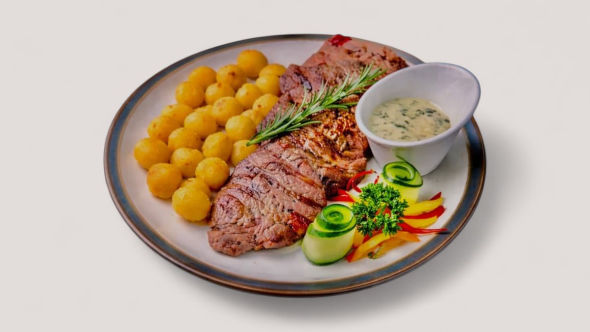 Рибай, микс-салат по вкусу, соус барбекю по вкусу (в сумму включена стоимость за одноразовую посуду)