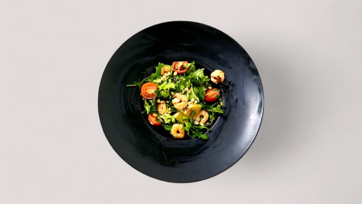 Черри,апельсин,лист салата,тигровые креветки,кедровые орехи и свит чили(в сумму включена стоимость за одноразовую посуду)