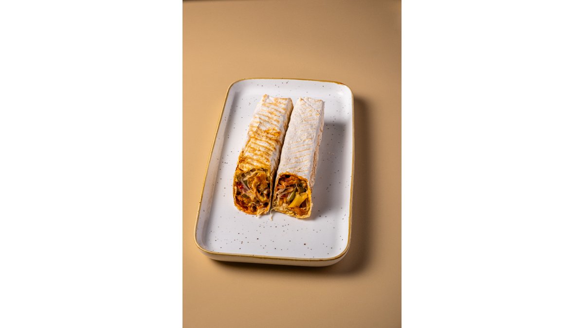 Лаваш, курочка, помидоры, свежие огурцы, капуста, морковь по-корейский, фирменный белый и красный соус.