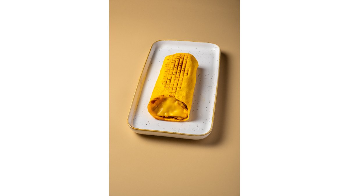 Сырная тортилья, курочка, помидоры, картофель фри, сыр сулугуни, сыр чеддер 2 шт., соус цезарь.