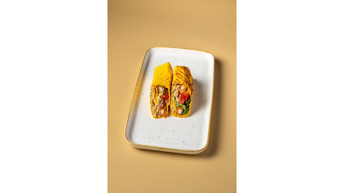 Сырная тортилья, курочка, ананас, креветки, помидоры, соус цезарь.