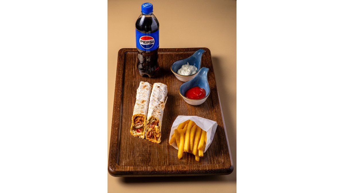 В Лепешке 1-шт, картофель фри - 1 порция стандарт, напиток - 500 мл-1-шт.