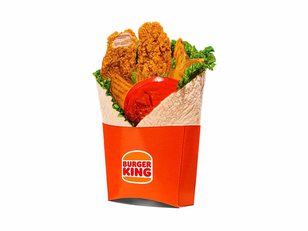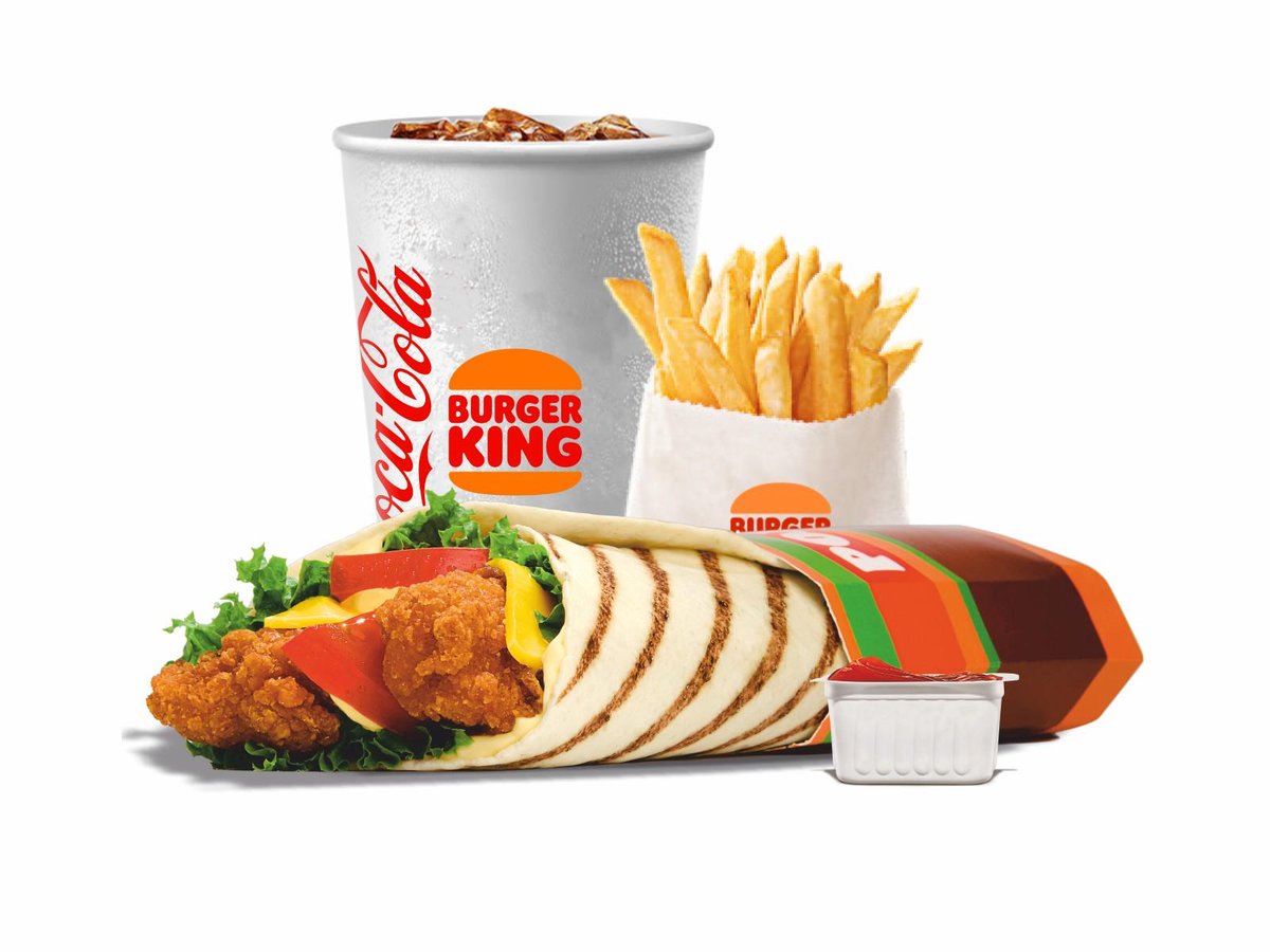Ролл с двойной говяжьей котлетой, приготовленной на огне, сыром и хрустящим жареным луком в пшеничной тортилье + кинг фри М + Coca-Cola 0,5 + соус на выбор