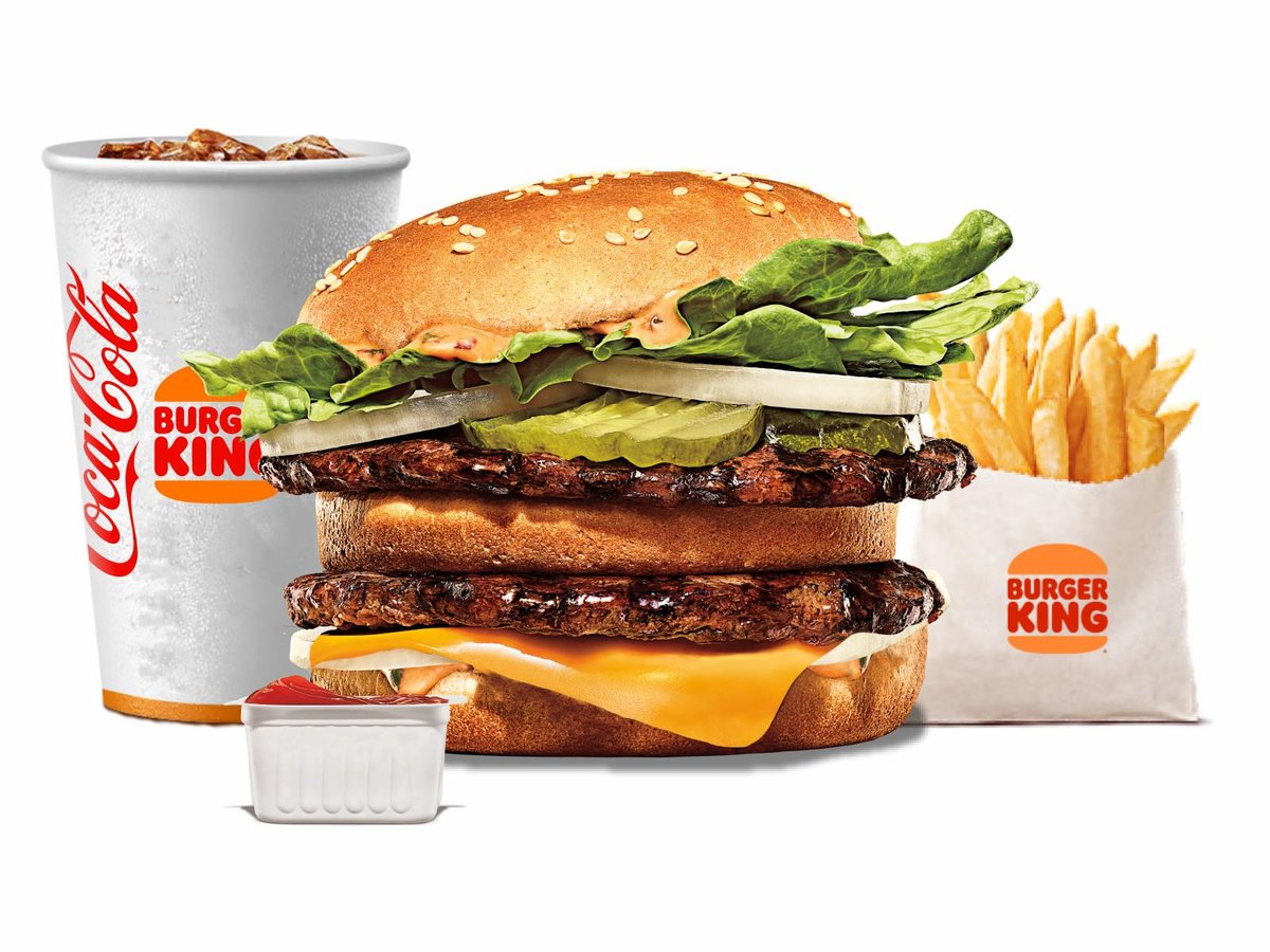Бургер с 2 говяжьими котлетами, солеными огурцами и cалатом Айсберг под фирменным Королевским соусом.