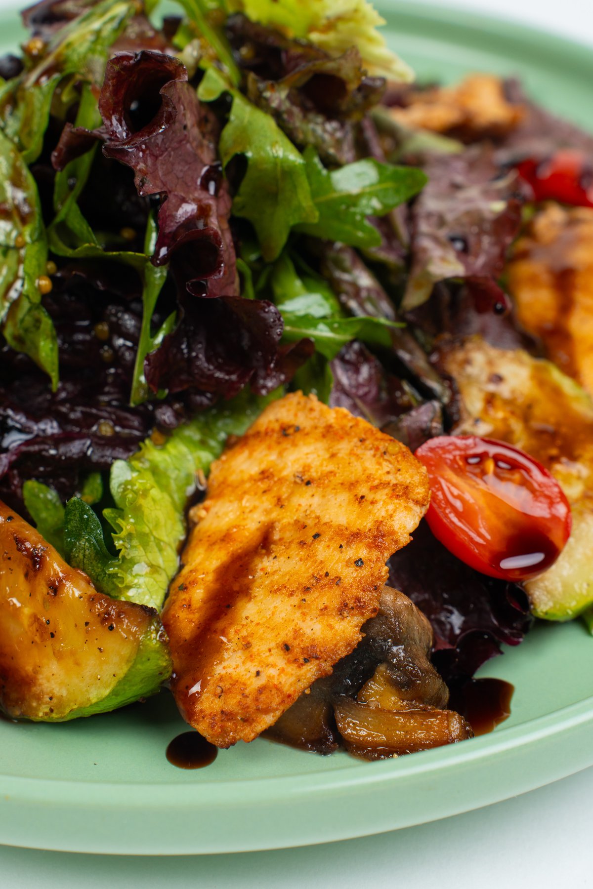 "Салат от Шефа" - изысканный микс из куриной грудки, цукини и кедровых орешков. Идеален для легкого обеда!