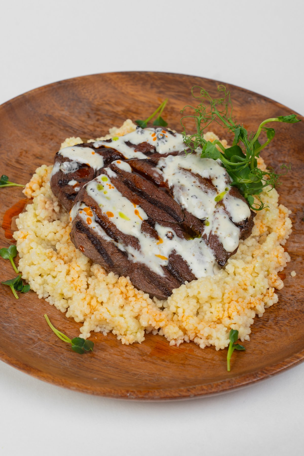 Медальоны из конины с кус-кусом и перечным соусом. Вкусное сочетание изысканности и пикантности. Наслаждайтесь нежностью!
