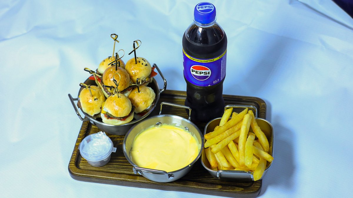 baby Katar Burger 8 штук, фри+соус, Pepsi 500 мл