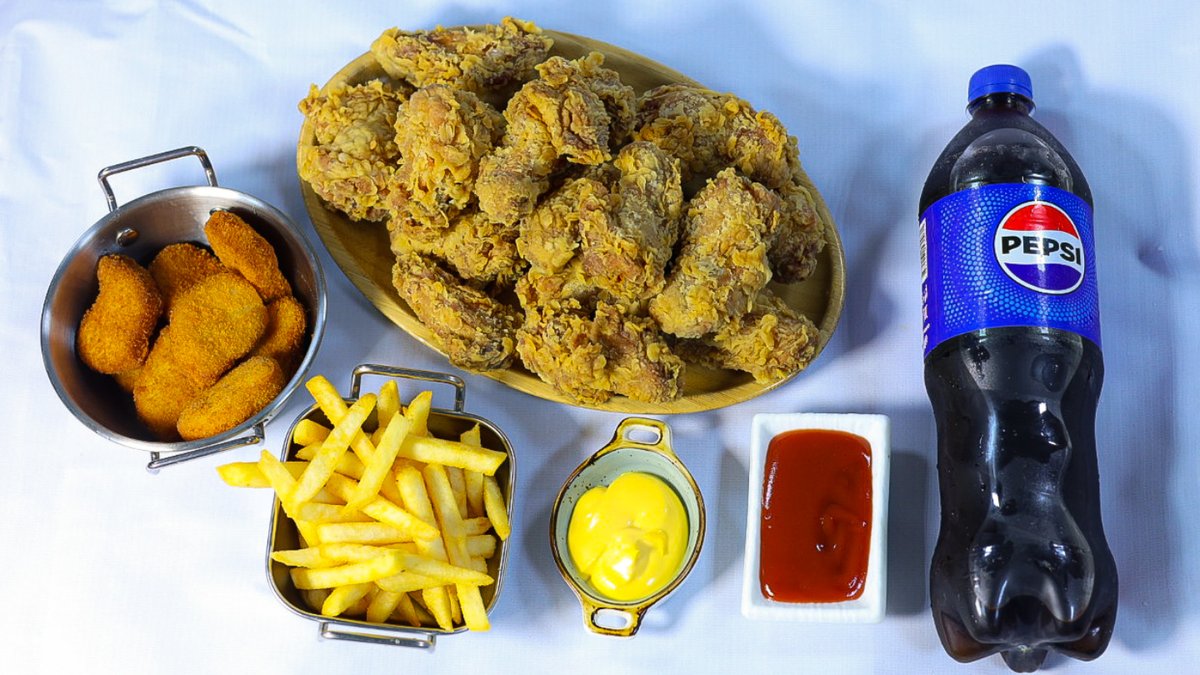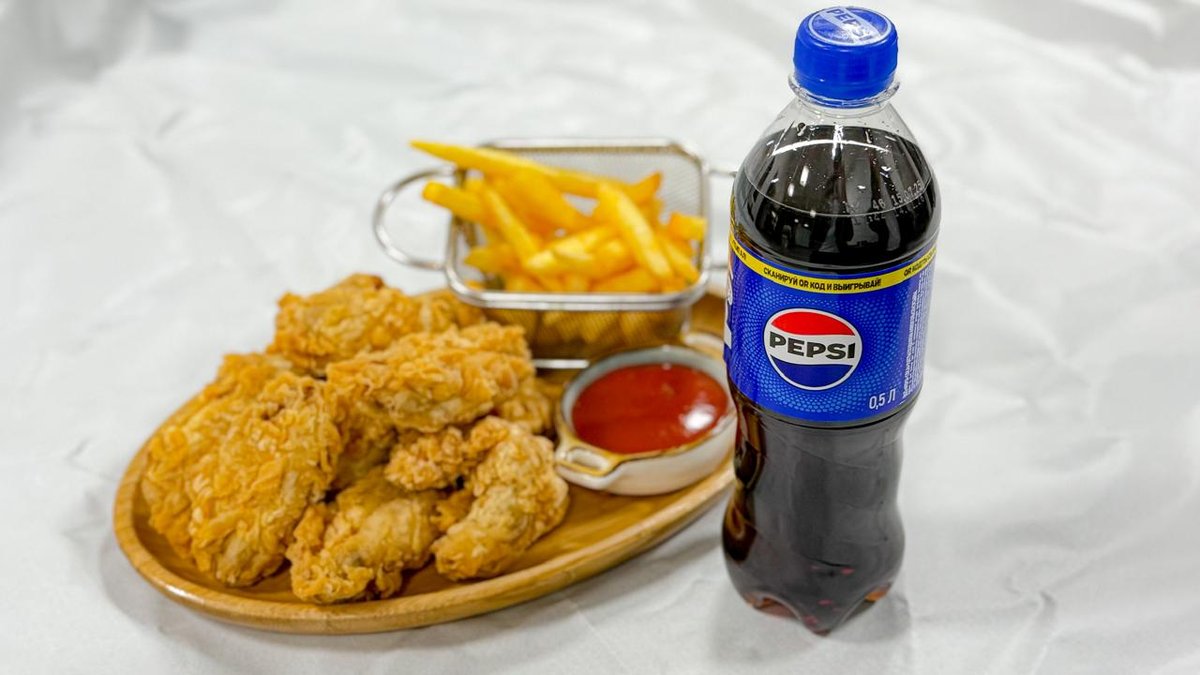 Крылышки 16штук.куриные наггетсы 5штук,фри+соус Pepsi 1000 мл