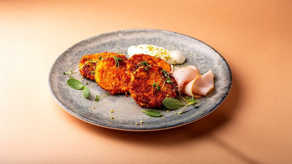 Сырники из топленого иримшика йогуртово-манговой соусе