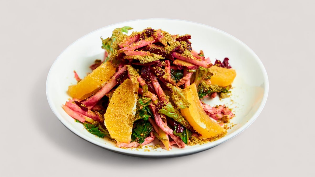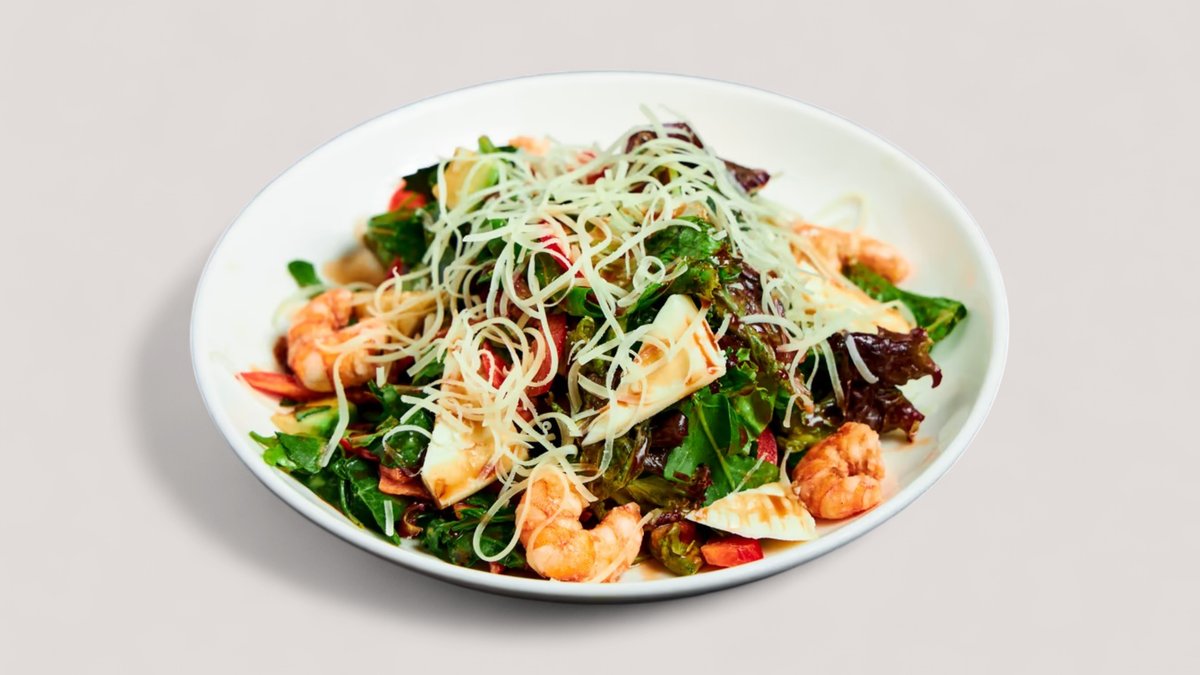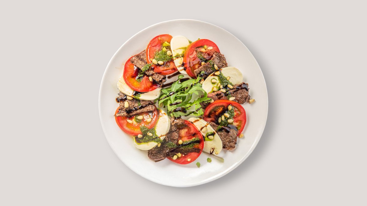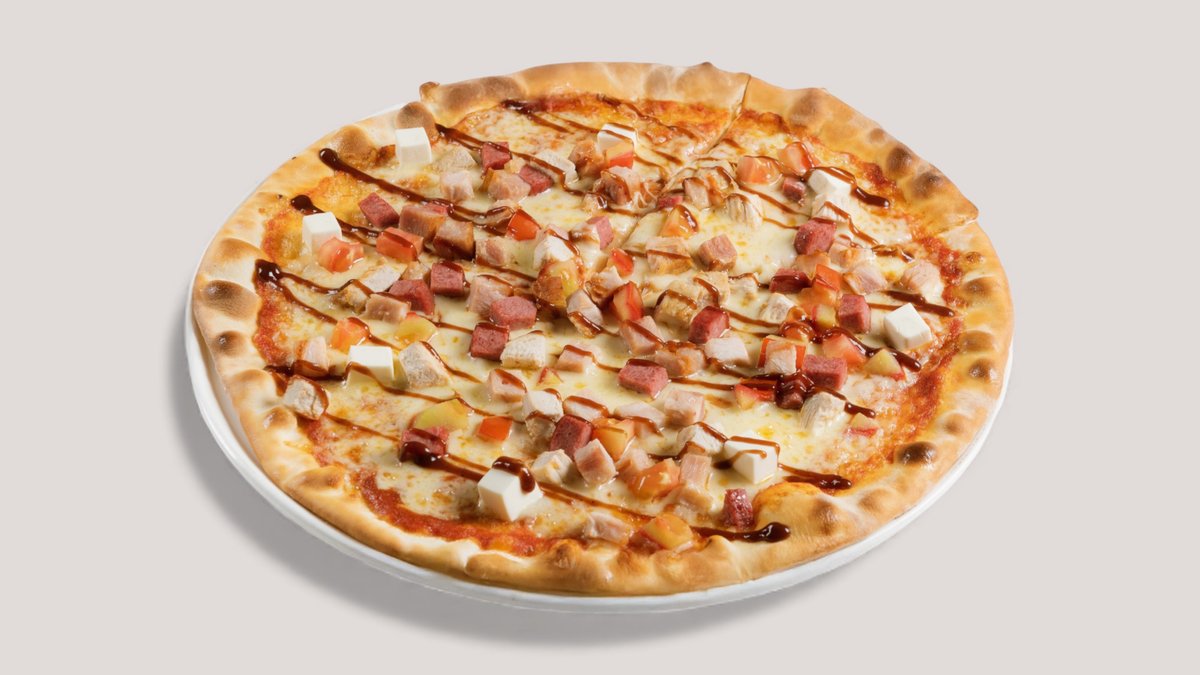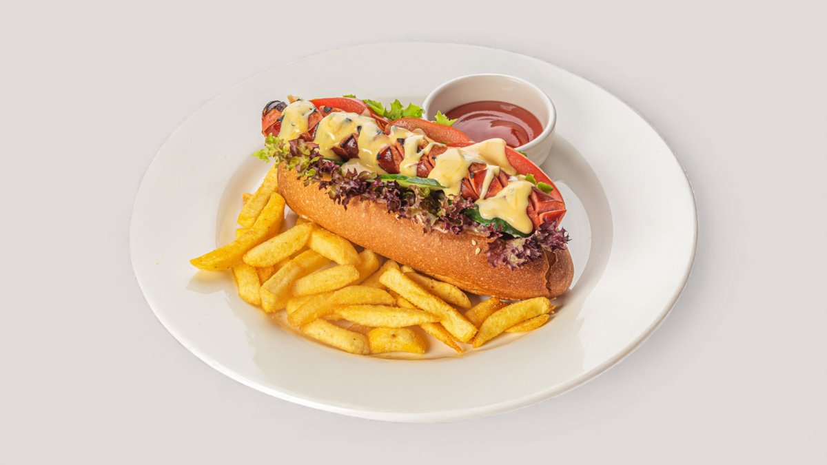 Листья салата,томаты,огурцы,копченная индейка,соус кетчунез