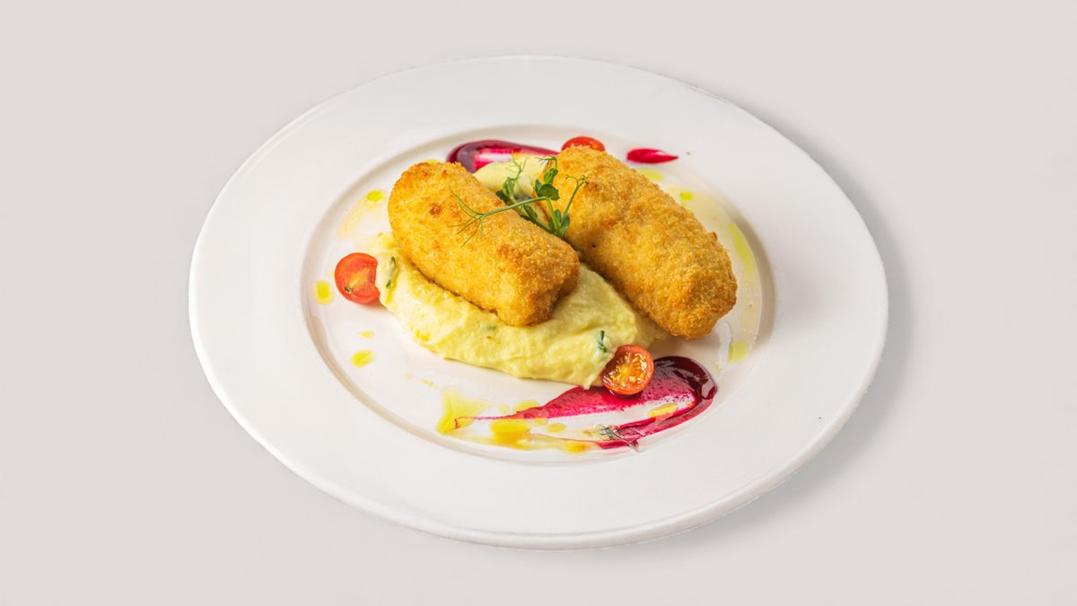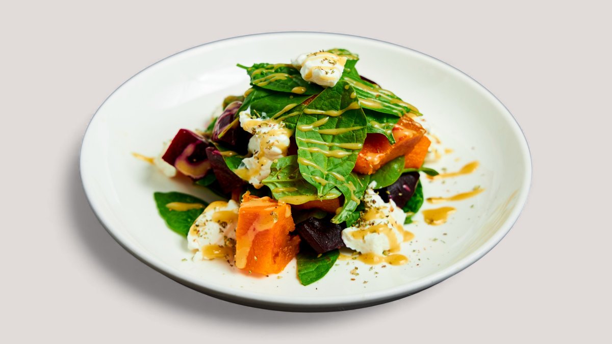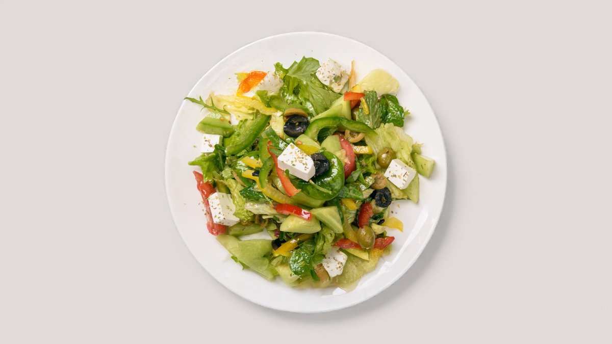 В порции 2 яйца,огурцы,зелень,листья салата, брынза