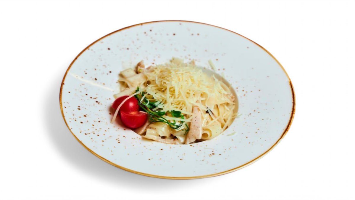 Фетучини, филе куриное, шампиньоны, сливки, пармезан