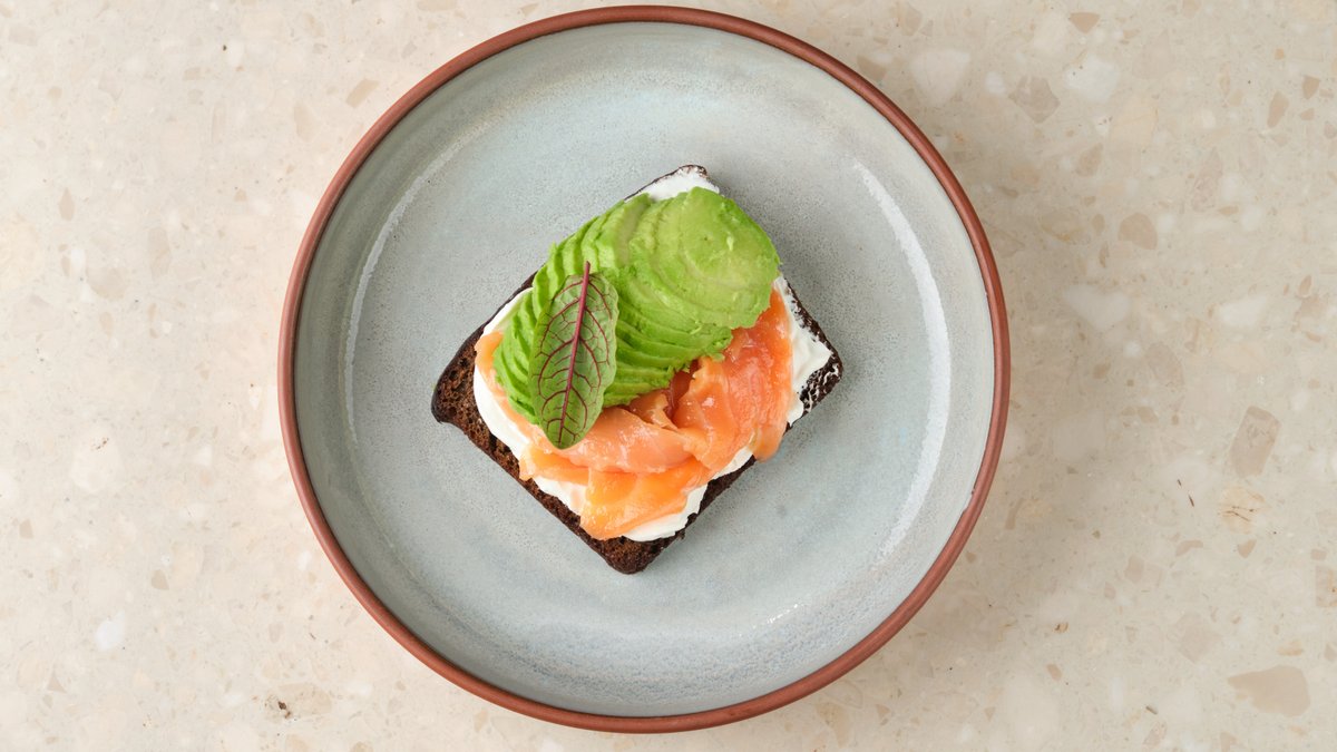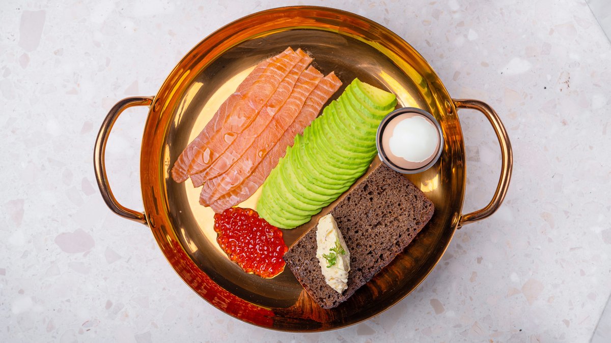Авокадо, лосось с/с, бородинский хлеб, трюфельное силивочное масло, красная икра, яйцо вареное