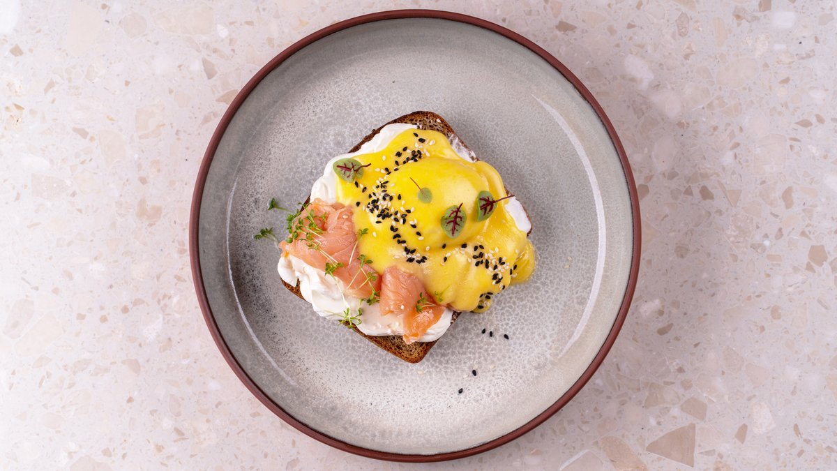 Яйцо Бенедикт с лососем на бородинском хлебе