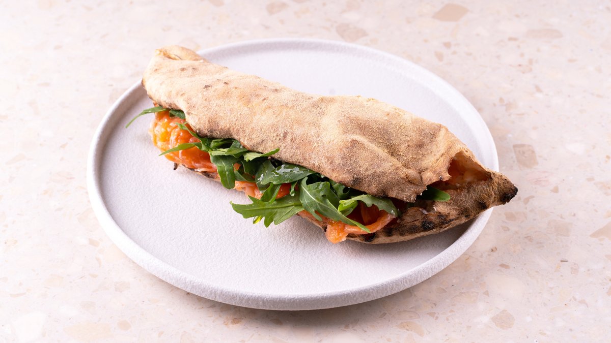 Неаполитанское тесто, руккола, лосось с/с, творожный сыр