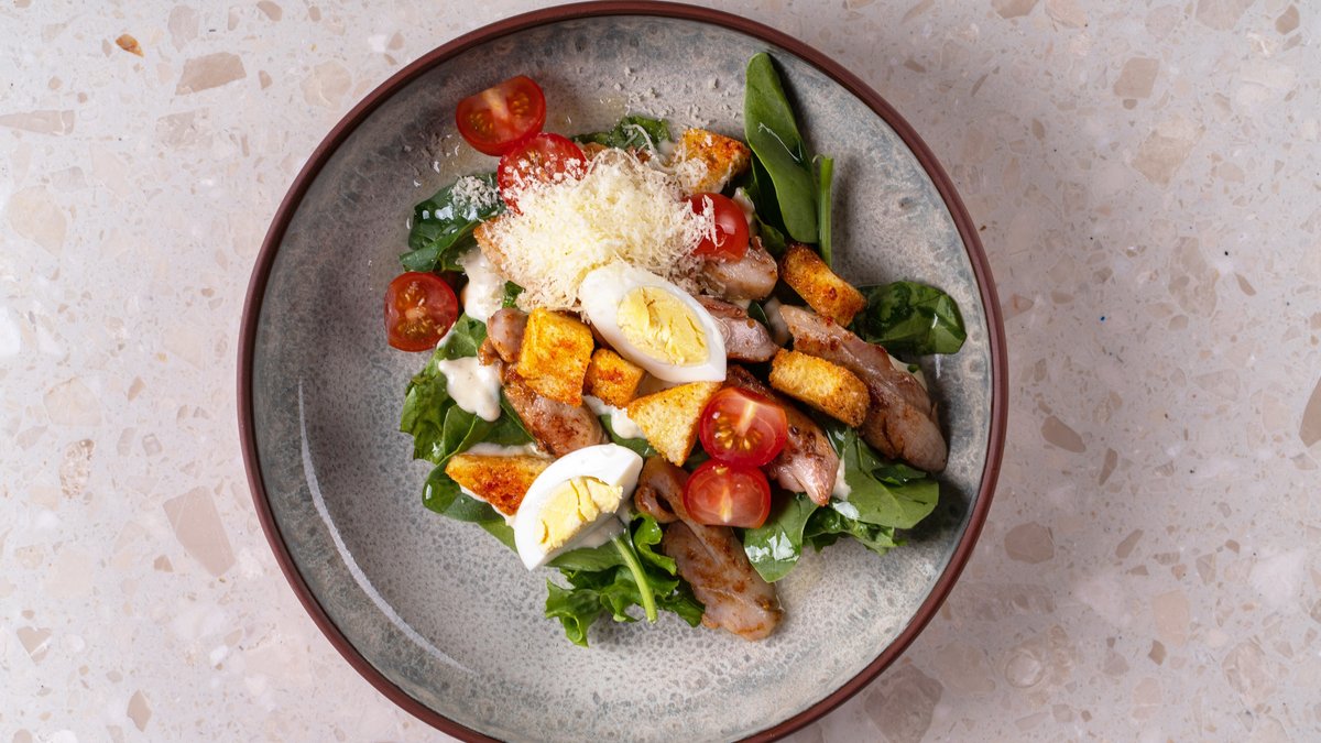 Цыпленок конфи, паккери, сыр пармезан, петрушка , наполитанский хлеб