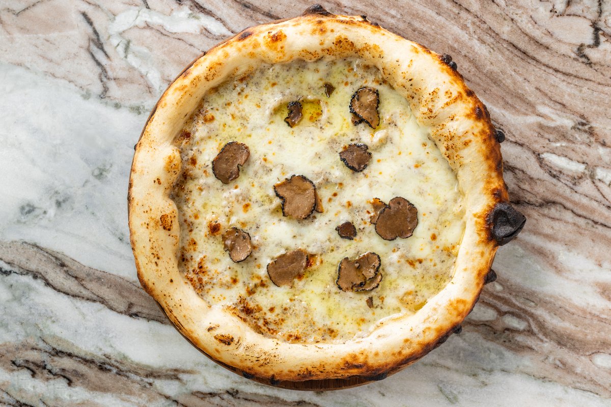 неопалитанское тесто, трюфельный паста, сливки, пармезан, трюфель черный, трюфельное масло, моцарелла