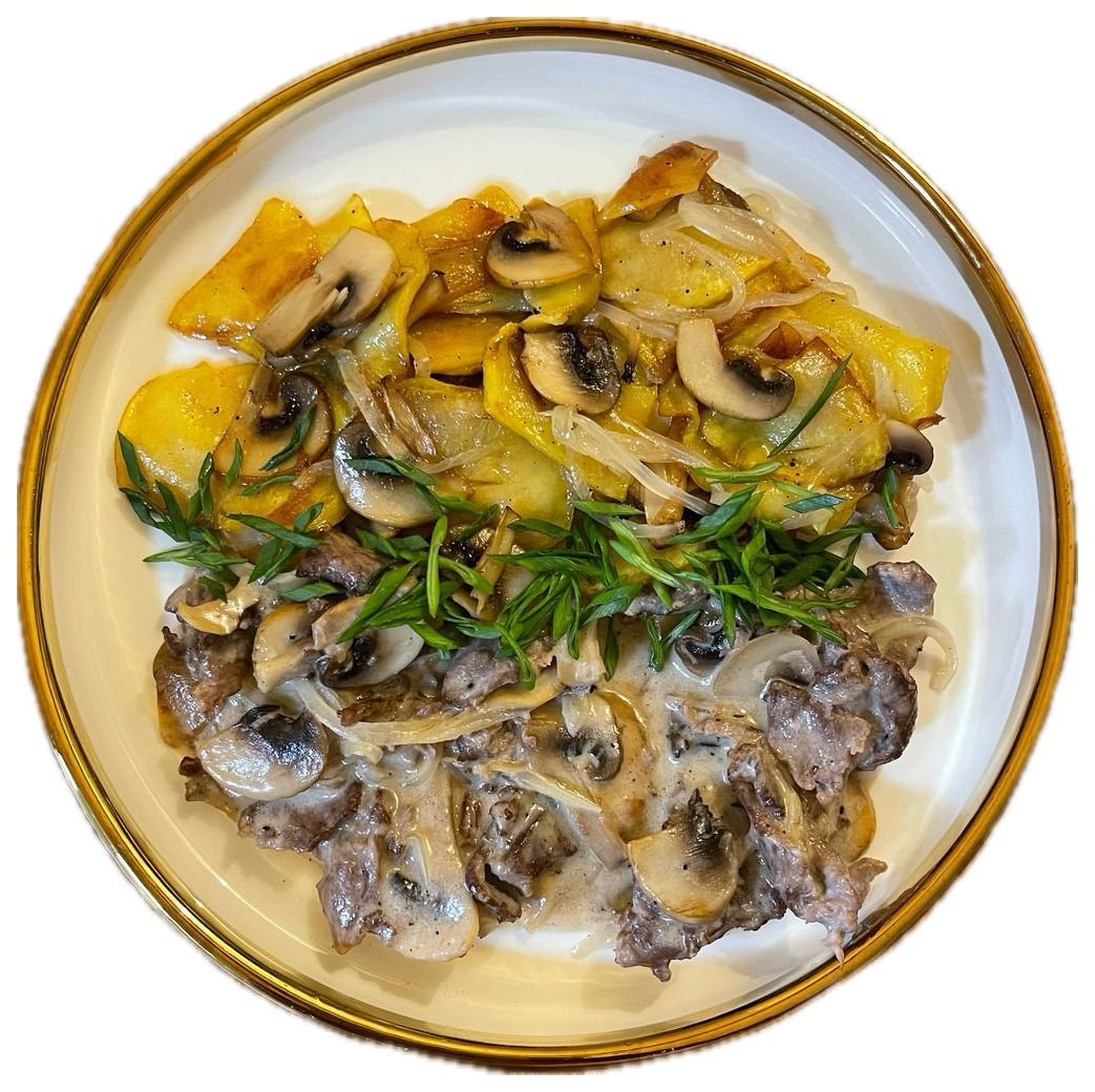 Телятина с грибами и картофелем