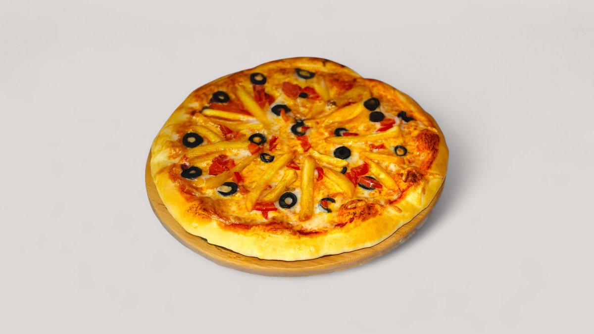фри, болгарский перец, помидоры, оливки, сыр, соус